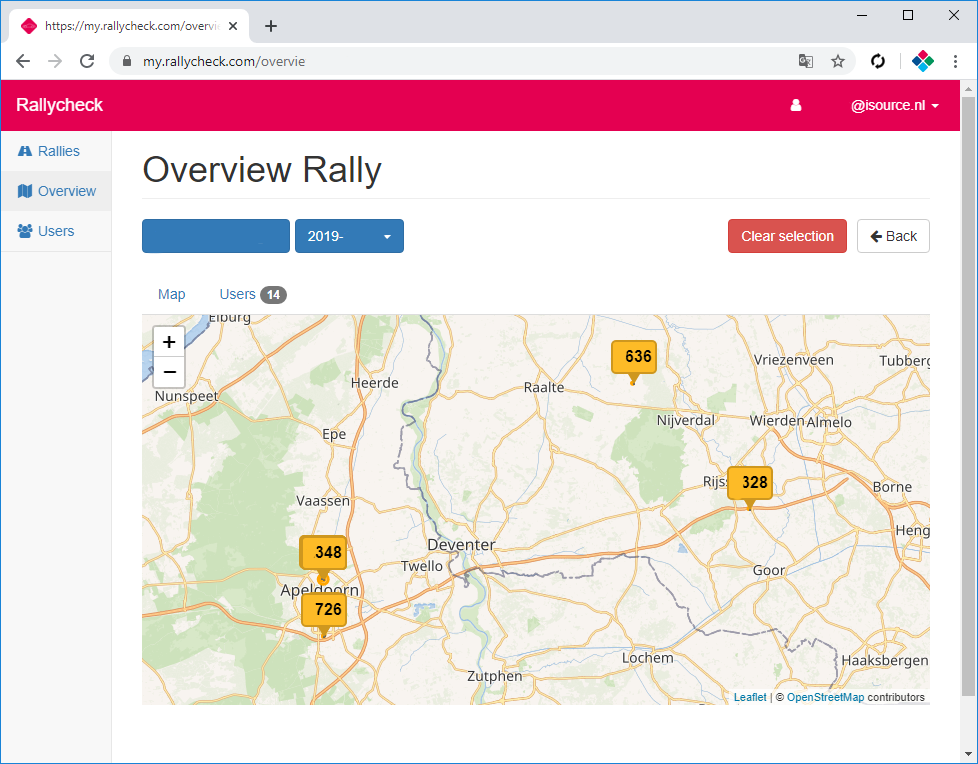 When a rally is active, it is visible in the Rallycheck app and can be selected bij all users of the app.