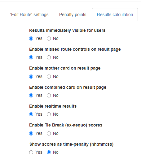 This field enables the option to send a Route Control Card to the Participant directly after finishing a Stage. When this option is set to No, no mail will be sent to the participant. The “resend mail” option in the results page is also disabled.